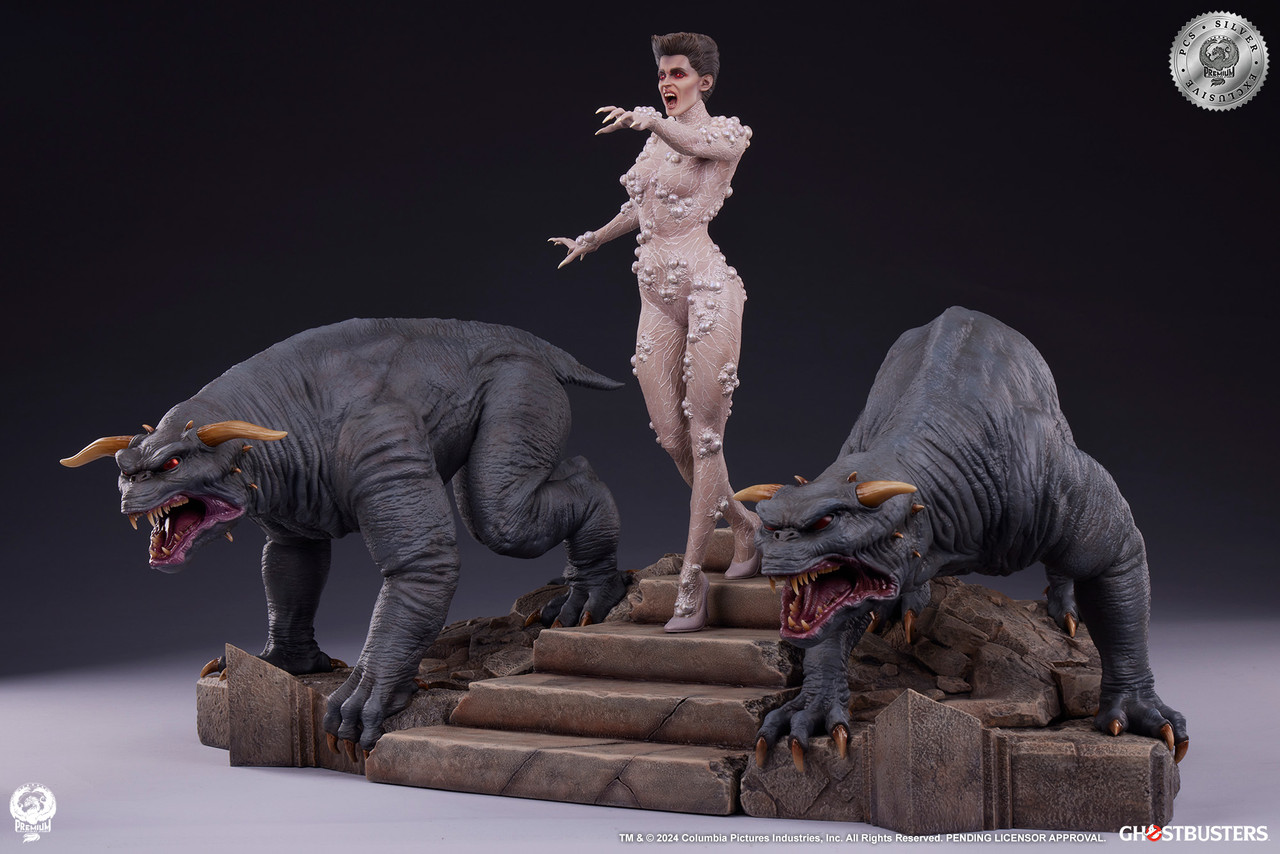Premium Collectibles Studio is proud to present the Ghostbusters - Gozer 1:4 Scale Premier Series Statue - Silver Exclusive. This PCS Exclusive version includes both Gozer, with an exclusive swap-out portrait, and her Terror Dog minions Vinz and Zuul.