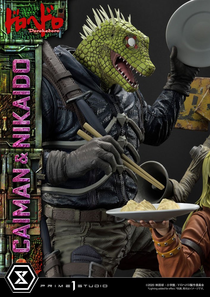Dorohedoro is a pulse-pounding, magic-splattered, rust-engulfed, rock-opera of an anime. It features our protagonist, who looks like a lizard. He doesn't know how because he has industrial-grade amnesia. His name is Caiman, only because his best friend, Nikaido gave him that name. And it is this friendship that is at play in Prime 1 Studio's newest, phenomenal anime statue.