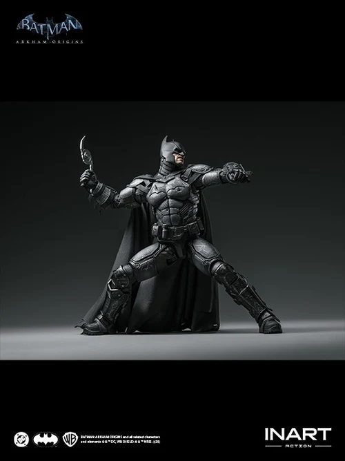This INART Twelfth Scale Figure faithfully recreates Batman battle-damaged appearance from Batman: Arkham Origins, with high-precision molding preserving every minute detail from the in-game model. This figure utilizes advanced painting techniques to render Batman's intense facial features in vivid detail, employs subtle shading to pay homage to the game's atmospheric lighting, and authentically translates the weathering and damage across the Batsuit into figure form. The wired battle-damaged cape is made of a fine, premium fabric, achieving a realistic drape even at a small scale while still retaining poseability.