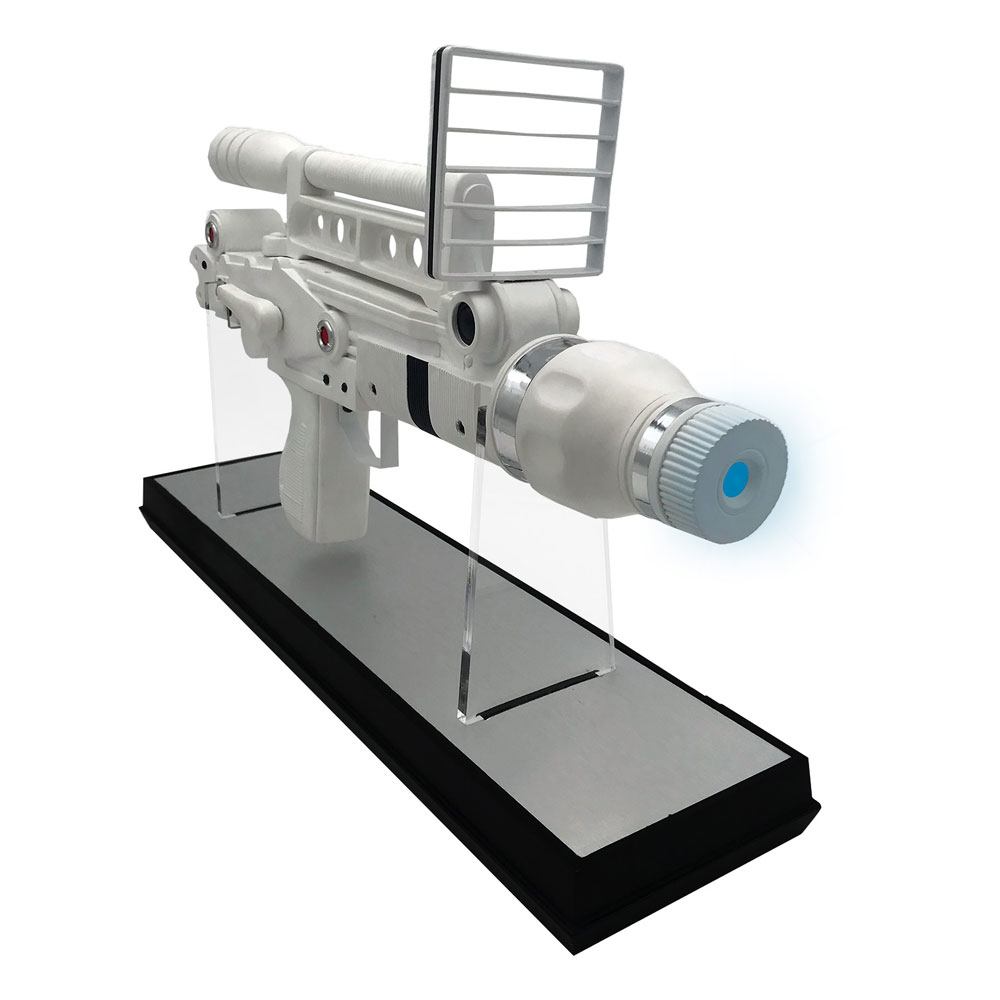 The replica features an ultra-bright blue LED light effect, activated by a concealed button, as a homage to the ground-breaking rotoscoped visual effects and to enhance the 70's laser-weapon aesthetic.