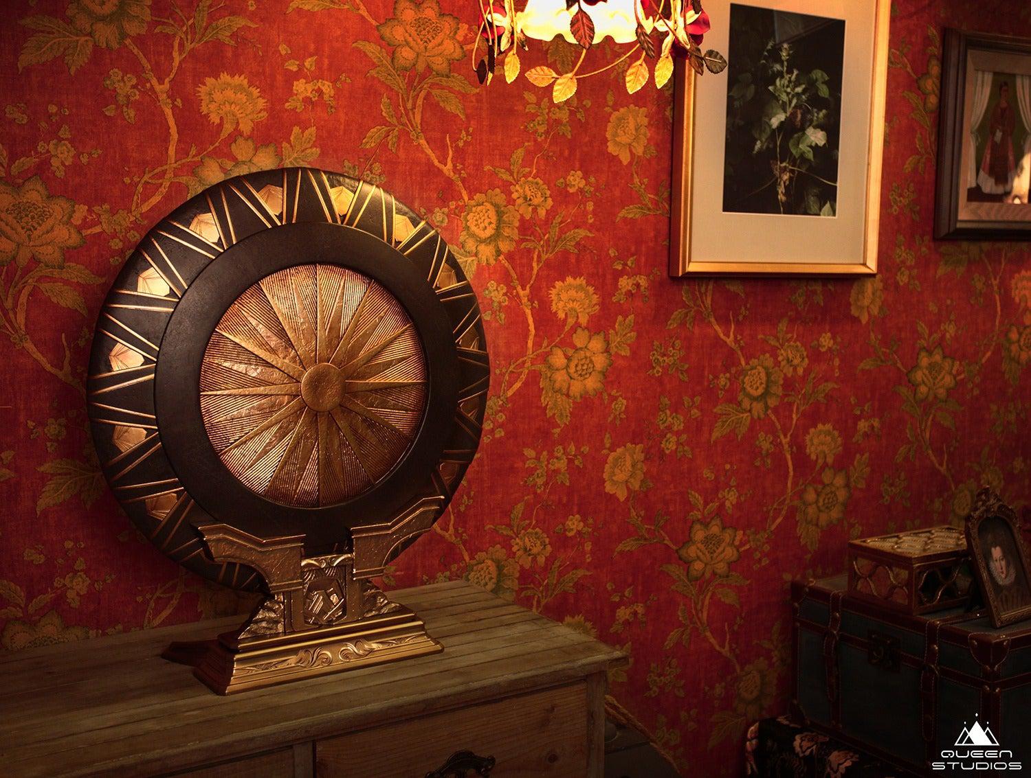 The design of the stand is simple yet artistic. The pattern in the middle is inspired by Wonder Woman's headband, symbolizing myth and power. Mount Olympus’ rocks are distributed on both sides, supporting this amazing artwork. The overall shape is natural and generous, classical and mysterious.